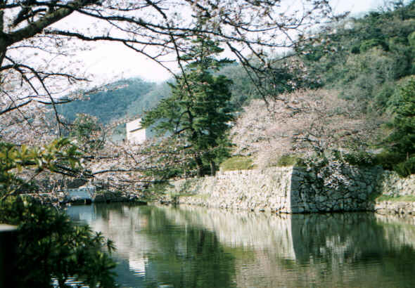 ![]() ● お堀端 04/02 ● 写真向って右が久松山 |