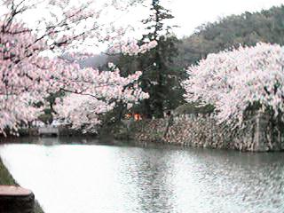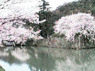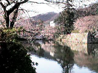 ![]() ● お堀端 04/02 ● 写真向って右が久松山 |